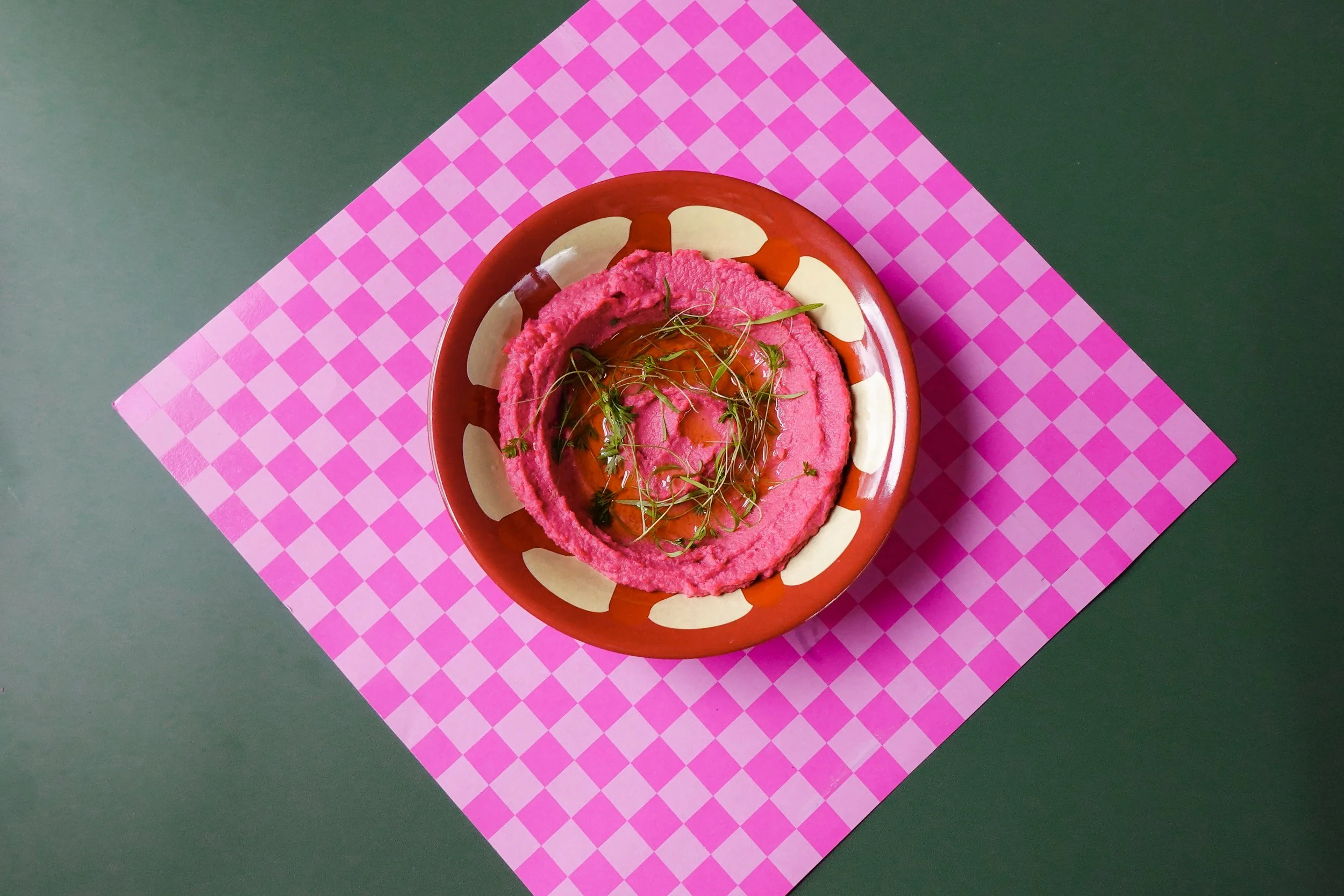 Ingredients: Chickpeas, Beets, Tahini, Lemon Juice, Garlic, Salt